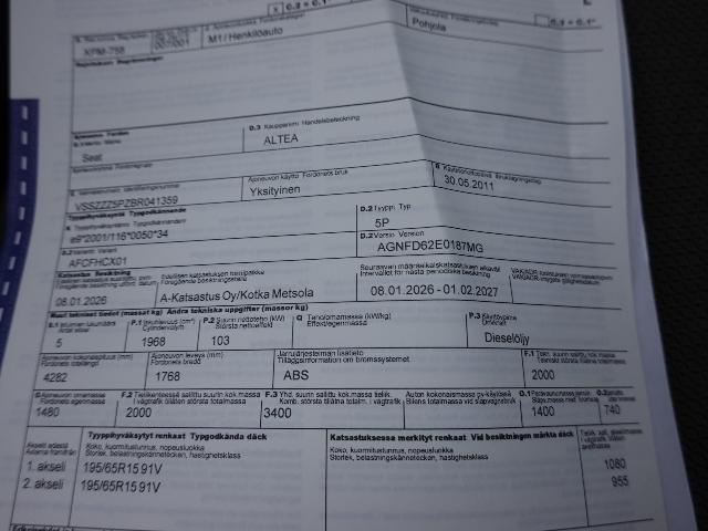 SEAT ALTEA 2.0 TDI AUTOM AJ 130TKM KATSASTETTU 1/-26