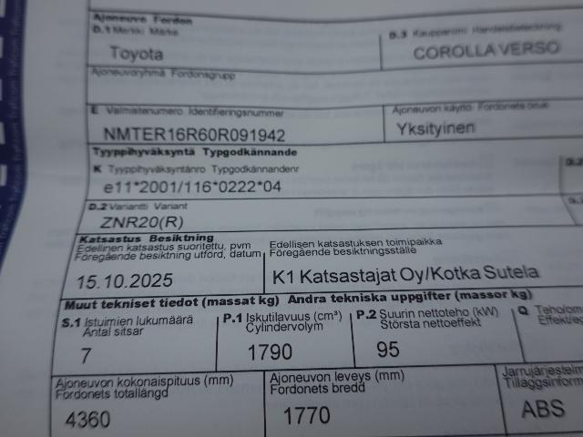 TOYOTA COROLLA VERSO 1.8 5D STW AJ 250 TKM AUTOM REK 7 HENGELLE KATSASTETTU 10/-25
